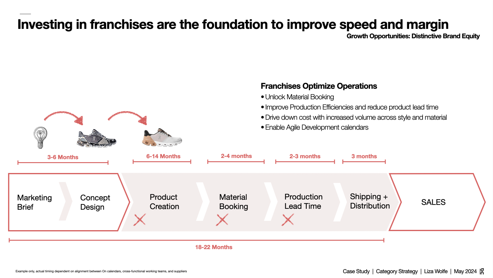 Body: The conventional approach to improving speed is to compress production timelines. The conventional approach to improving margin is to reduce material cost. Both of those interventions happen at the wrong end of the pipeline. The front end — brief through design — is where 9 to 20 months of calendar disappears and where the most expensive creative decisions get made without commercial grounding. Franchise architecture changes that. When construction is proven, materials are committed, and suppliers have relationship history, a new seasonal product becomes an update. That's how 18 months becomes 4 to 6 weeks. That's where the margin is.